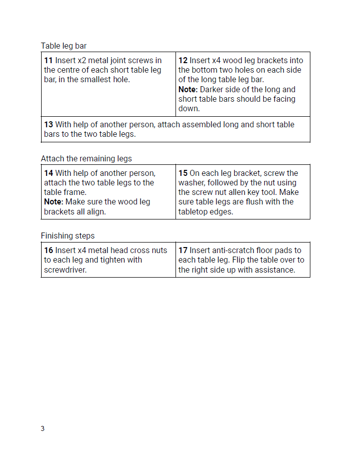 This is a set of instructions from IKEA which I converted into text form. Having access to an SME/engineers would have improved the name of the individual parts, as IKEA does not list them specifically on their original set of instructions.
