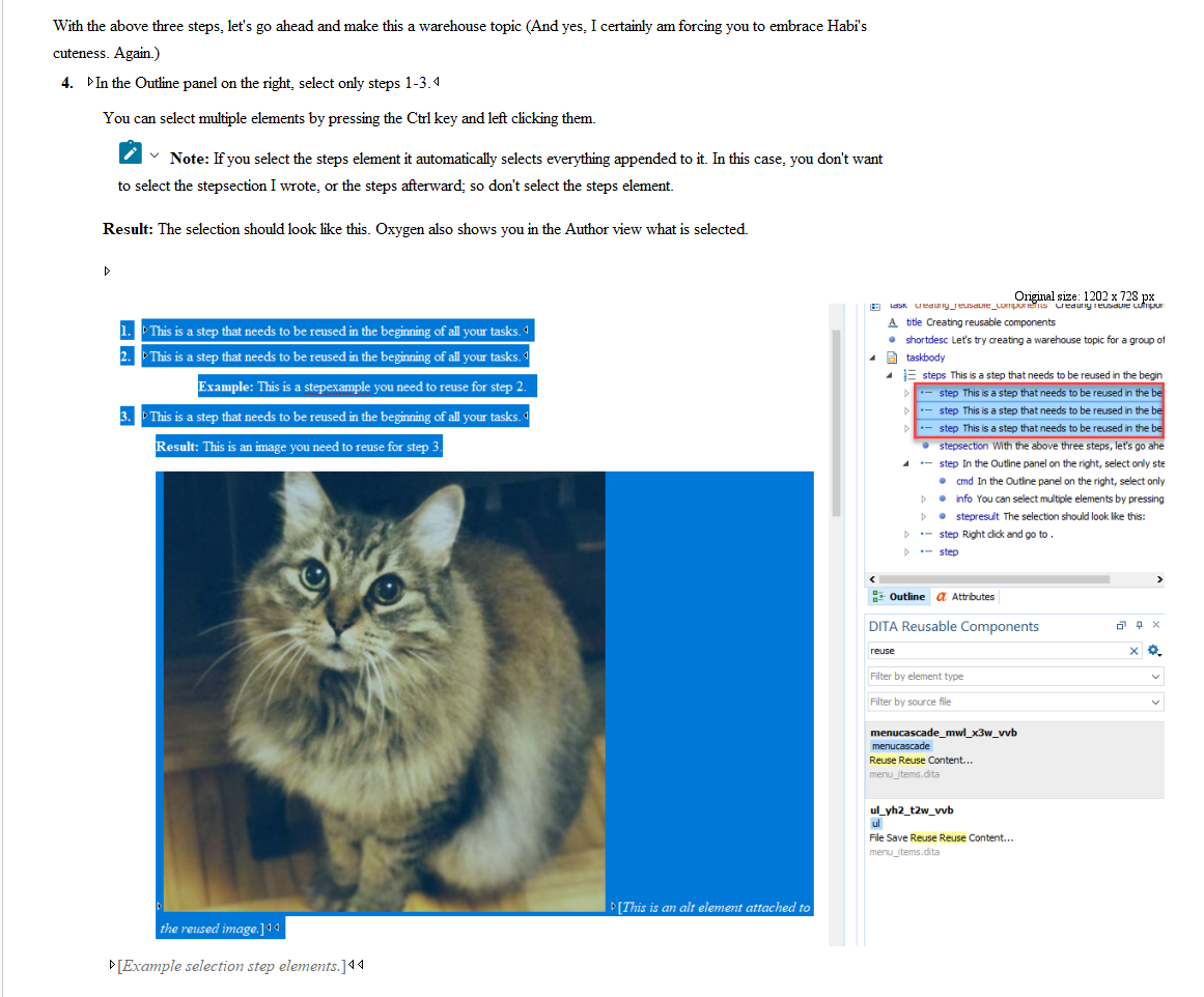 If you want to try this yourself, download Oxygen XML Editor from here, and sign up for a free trial. Then and download this .zip file, extract it, and open the oxygen_training.dita file in Oxygen to get started.